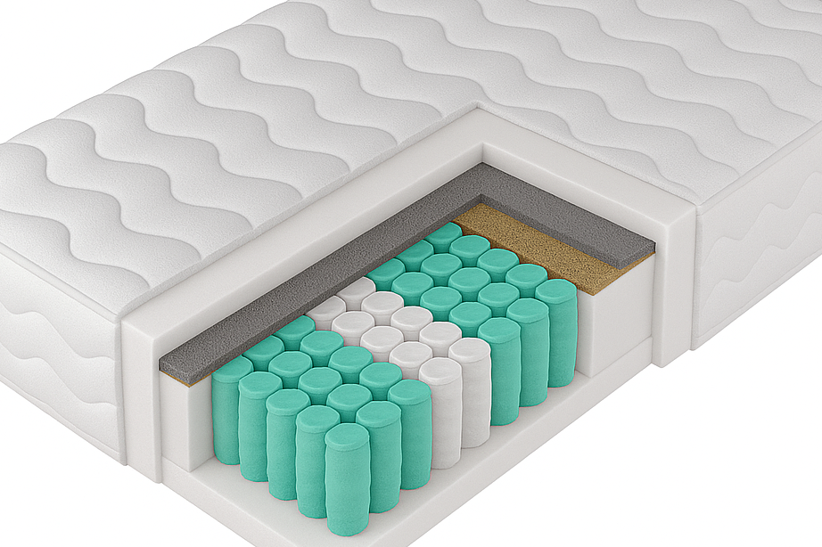 Kolory poszczególnych warstw mają charakter poglądowy i mogą różnić się od ich rzeczywistego wyglądu. Służą one jedynie wizualnemu przedstawieniu i odróżnieniu poszczególnych elementów materaca, nie wpływając przy tym na właściwości ani jakość zastosowanych surowców.