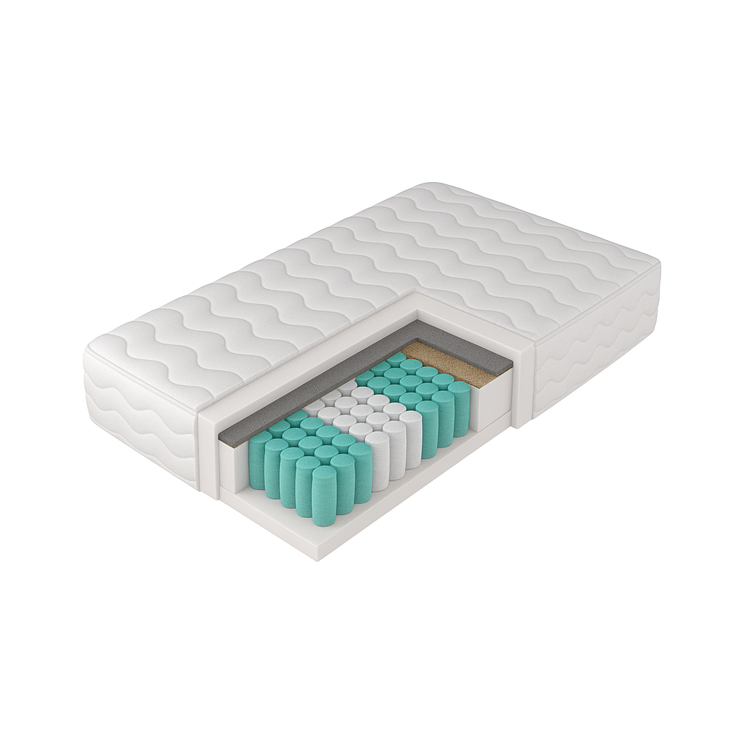 Materac ten został stworzony z wykorzystaniem nowoczesnych technologii i dostępny jest w pięciu rozmiarach, dzięki czemu łatwo dopasować go do każdego łóżka. Pierwsza warstwa z elastycznej pianki poliuretanowej zapewnia miękkość i sprężystość po obu stronach, natomiast jego największym atutem jest wkład ze sprężyn kieszeniowych. Umieszczone osobno, każda sprężyna pracuje niezależnie, co zwiększa komfort wypoczynku, idealnie dostosowując się do anatomicznych krzywizn ciała i zapewniając cichą, niemal bezgłośną pracę.
