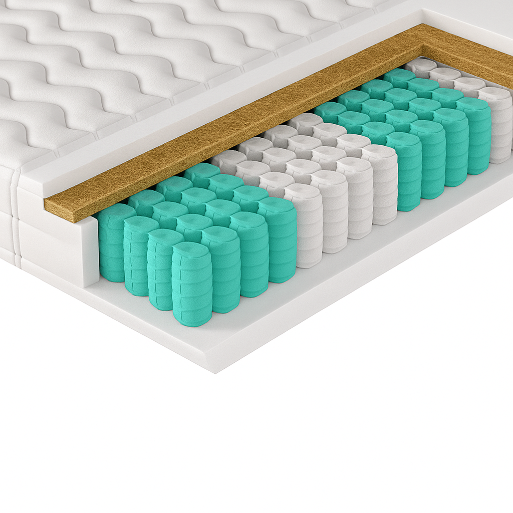 Kolory poszczególnych warstw mają charakter poglądowy i mogą różnić się od ich rzeczywistego wyglądu. Służą one jedynie wizualnemu przedstawieniu i odróżnieniu poszczególnych elementów materaca, nie wpływając przy tym na właściwości ani jakość zastosowanych surowców.