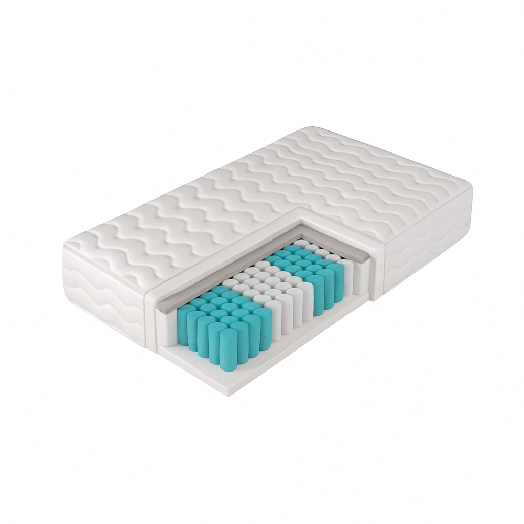 Materac ten został stworzony z wykorzystaniem nowoczesnych technologii i dostępny jest w pięciu rozmiarach, dzięki czemu łatwo dopasować go do każdego łóżka. Pierwsza warstwa z elastycznej pianki poliuretanowej zapewnia miękkość i sprężystość po obu stronach, natomiast jego największym atutem jest wkład ze sprężyn kieszeniowych. Umieszczone osobno, każda sprężyna pracuje niezależnie, co zwiększa komfort wypoczynku, idealnie dostosowując się do anatomicznych krzywizn ciała i zapewniając cichą, niemal bezgłośną pracę.