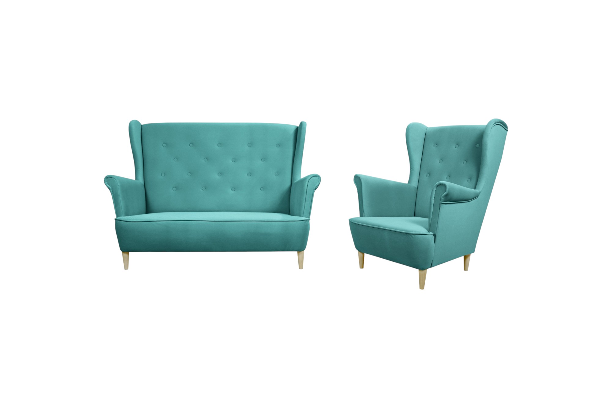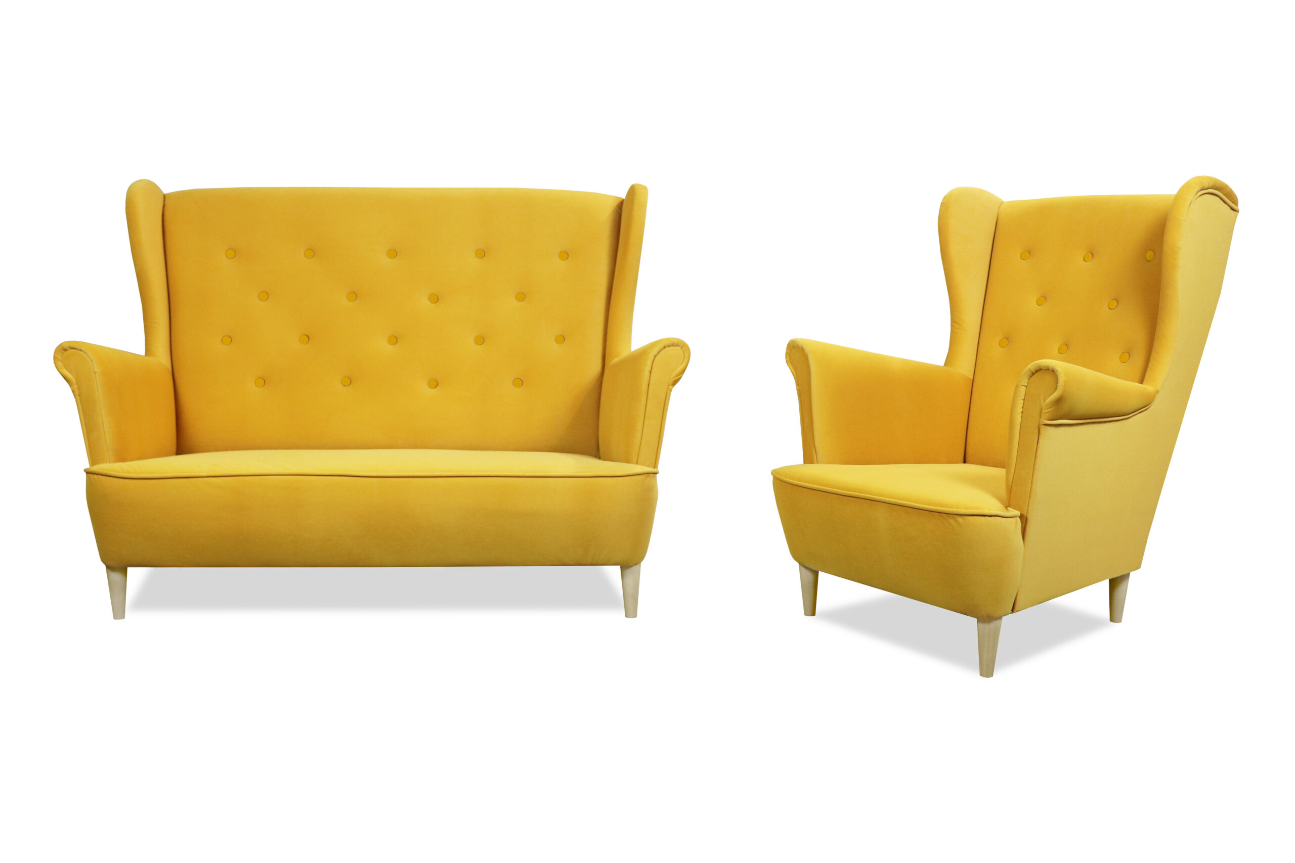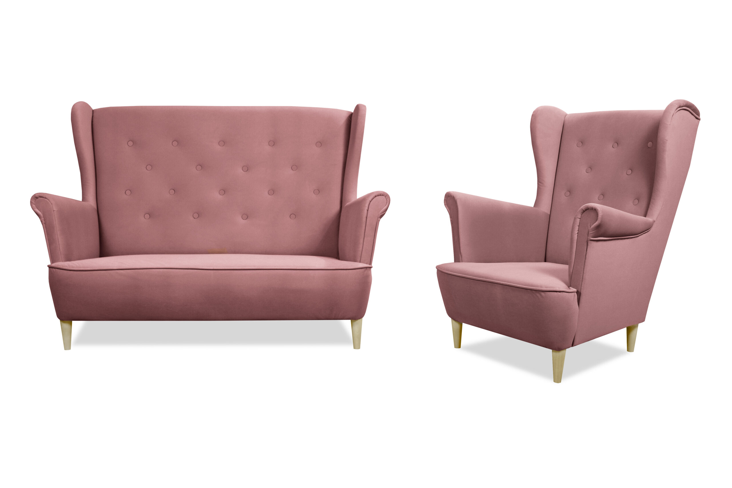 Zestaw wypoczynkowy FAVIO to jeden z najczęściej kupowanych modeli do wielu wnętrz – salonów, pokojów gościnnych lub eleganckich biur. To uniwersalny zestaw wypoczynkowy tapicerowany, który zachwyca swoim retro wyglądem, a przy tym sprzyja komfortowemu wypoczynkowi. Szerokie oparcie wykończone charakterystycznymi „uszami”, podwinięte podłokietniki oraz miękkie i wygodne siedzisko wykonane z pianki i sprężyny falistej tworzą mebel idealny. Dopełnieniem są stabilne nóżki wykonane z drewna naturalnego.
