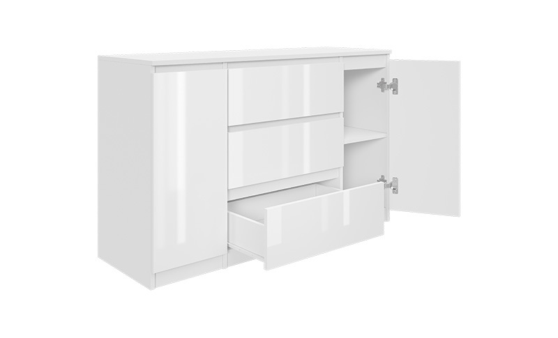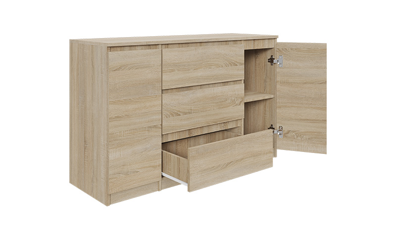 Komoda doskonale wpisuje się w każdą aranżację wnętrza. Jest idealnym dodatkiem zarówno do salonu, jak i sypialni, oferując styl i funkcjonalność. Bez względu na to, czy Twoje wnętrze jest nowoczesne, klasyczne czy industrialne, komoda pokojowa będzie stanowić doskonałe uzupełnienie. Posiada zarówno szafki, w których można ukryć większe przedmioty, jak i szuflady, które są idealne do organizacji drobniejszych rzeczy, takich jak bielizna czy akcesoria.