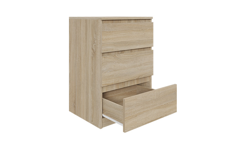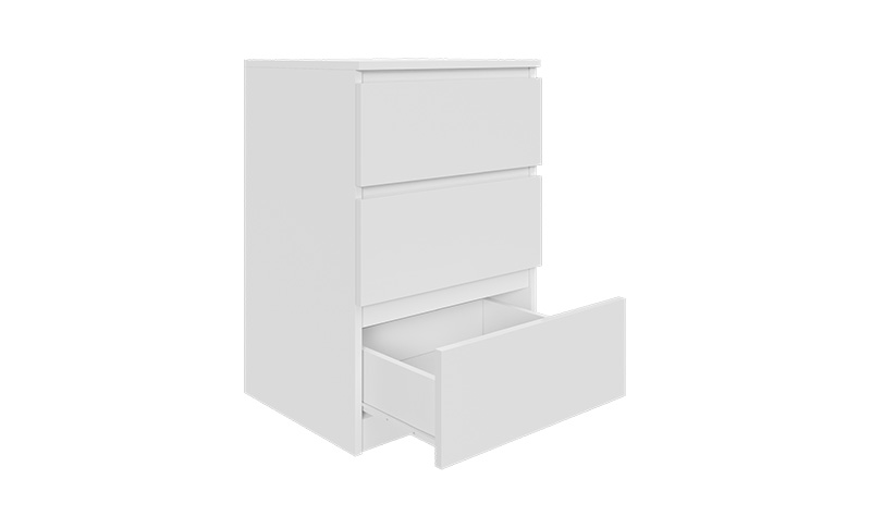 – Podczas montażu i korzystania z komody należy zachować szczególną ostrożność, aby uniknąć jej przypadkowego przewrócenia. Aby zapewnić stabilność mebla, ważne jest, by najcięższe przedmioty umieszczać w dolnych szufladach. Prawidłowe rozłożenie obciążenia w szufladach jest kluczowe dla bezpiecznego użytkowania komody.