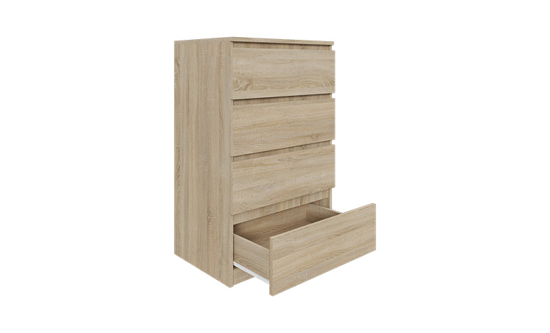 – Podczas montażu i korzystania z komody należy zachować szczególną ostrożność, aby uniknąć jej przypadkowego przewrócenia. Aby zapewnić stabilność mebla, ważne jest, by najcięższe przedmioty umieszczać w dolnych szufladach. Prawidłowe rozłożenie obciążenia w szufladach jest kluczowe dla bezpiecznego użytkowania komody.